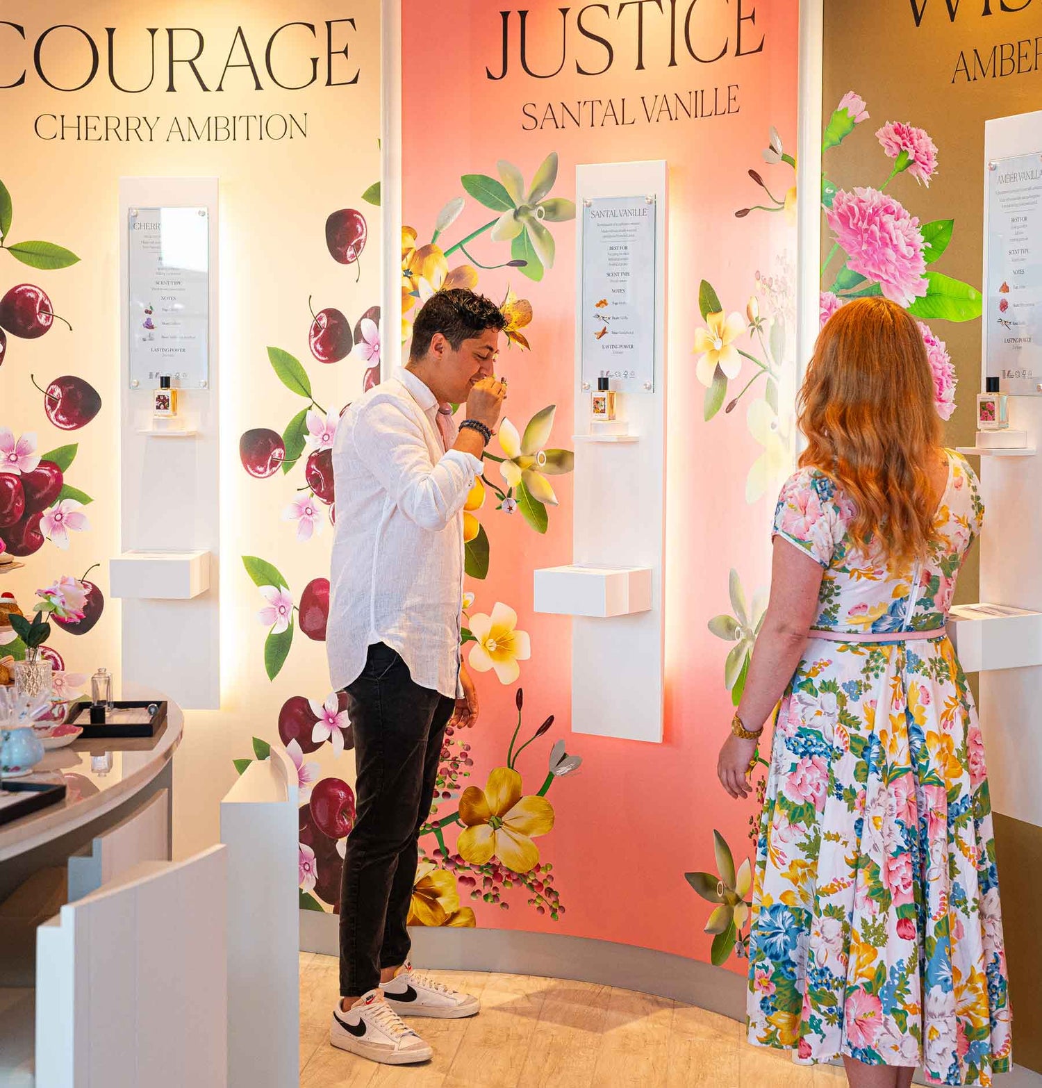 Walk along the stations, spray each perfume on a blotter, and note your favorites.